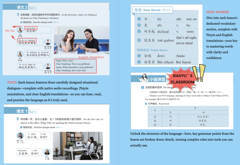 Cet ensemble comprend le manuel HSK 1 et le cahier d'exercices correspondant. La version numérique du manuel est déjà disponible, et la version numérique du cahier d'exercices sera mise en ligne avant le 1er mai. Si vous commandez également les versions physiques, nous vous livrerons les livres avant la fin du mois de juin.